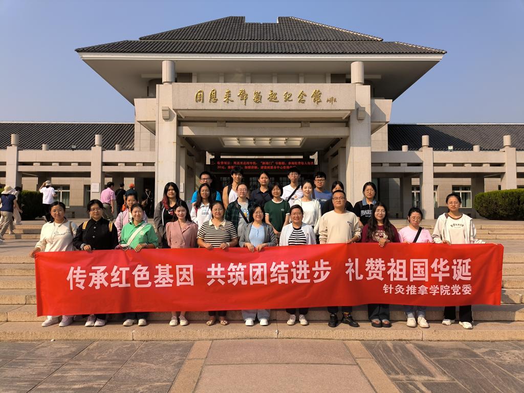 为深入贯彻落实党的二十届三中全会精神,深入学习贯彻习近平总书记关于加强和改进民族工作的重要思想,喜迎中华人民共和国成立75周年,突出政治教育、党性教育、爱国主义教育,9月24日,针灸推拿学院党委组织师生党员、少数民族学生代表30人前往周恩来邓颖超纪念馆开展“传承红色基因 共筑团结进步 礼赞祖国华诞”主题教育活动。