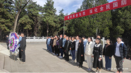下午,学院师生到盘山烈士陵园(抗战纪念馆)开展“缅怀革命先烈,弘扬民族精神”主题祭扫活动。苍松长耸翠,古柏永垂青。在革命烈士纪念碑前,全体人员整齐肃立,奏唱国歌,垂首默哀,师生代表上前敬献花圈,表达对革命烈士的崇高敬仰和无尽哀思。师生党员在纪念碑前,集体面向党旗,高举右拳,重温入党誓词,用铿锵有力的誓言表达向先烈学习、弘扬革命精神的决心。