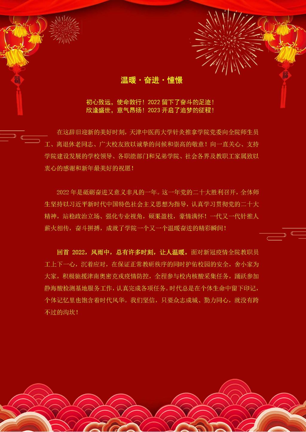 天津中医药大学针灸推拿学院新年贺词