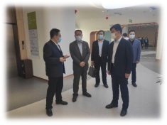 在天津大学新城医院,董事长王天洪、副院长韩广对刘革生书记一行的到来表示欢迎,详细介绍了医院情况,对学校给予的支持和关注表示感谢,双方就人才培养的需求、科学研究的融合、学生实习实践以及进一步完善合作互惠互利等方面达成了初步合作意向。刘革生书记表示,学校在为企业提供更多优质人才的同时,也要同企业进一步深化合作,从科研创新、资源共享等方面为企业提供更多帮助,实现校企双方共赢共益。同时,到医院急症病房、重症监护室、高压氧舱、影像中心、康复中心、体检中心等科室进行了实地走访。