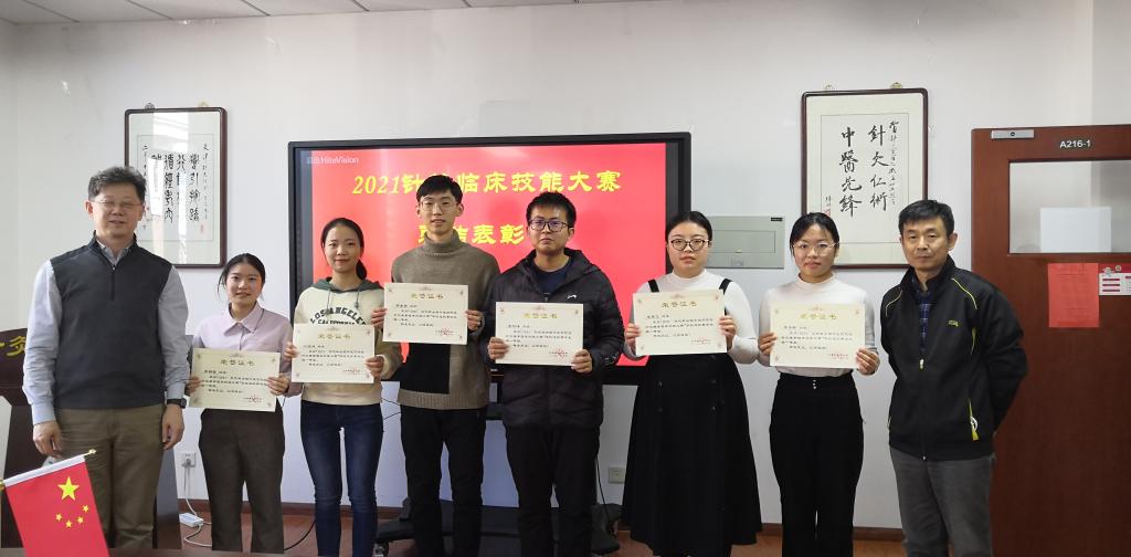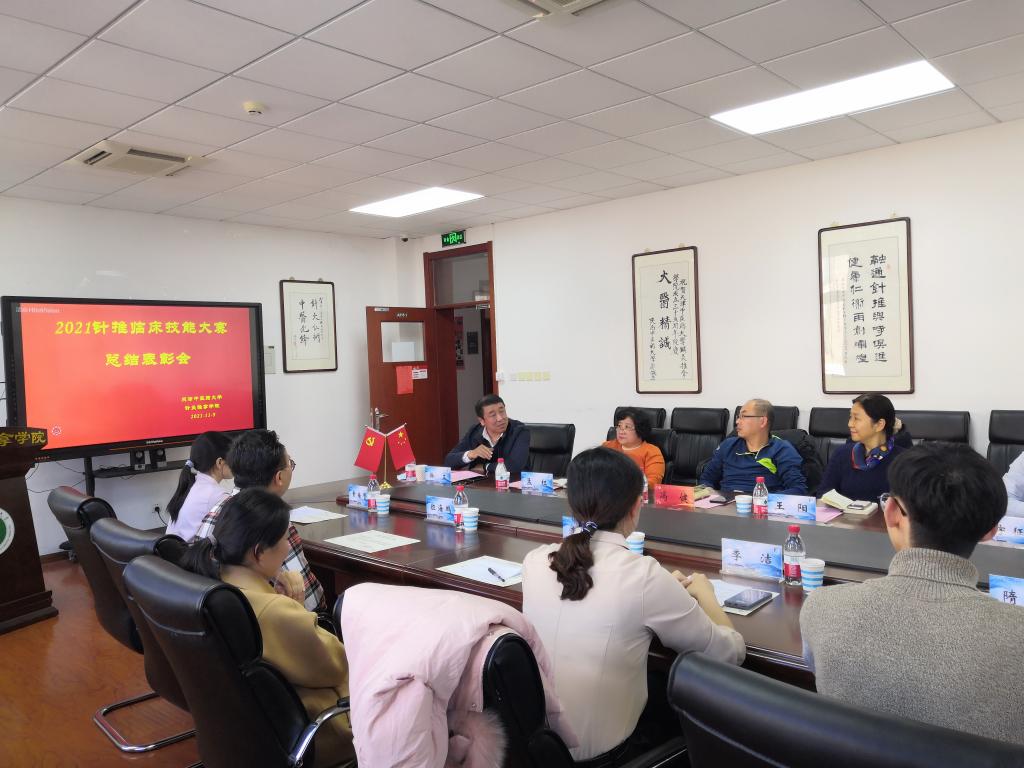 2021年11月9日下午2:30,针灸推拿学院举办2021针推临床技能大赛总结表彰会,学校教务处冯健副处长,王阳副处长,一附院针灸部杜宇征部长,二附院教学处孙宝谦处长,针推学院领导及全体培训教师,参加培训及比赛的全体青年教师及学生参加会议。