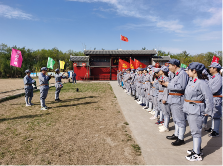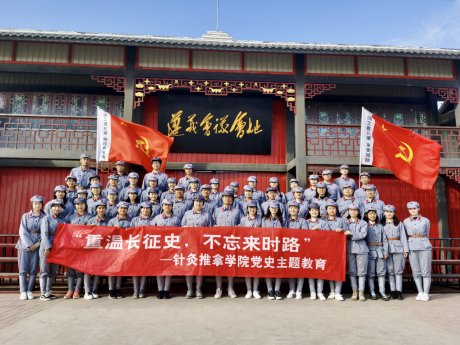 为深化党史学习教育,回顾党的百年光辉历程,贯彻习近平总书记在党史学习教育动员大会上重要讲话精神,2021年4月13日下午,针灸推拿学院党委组织党员师生、团员代表、少数民族学生代表50余人来到天津市西青区辛口镇第六埠村红色教育基地,开展以“重温长征史,不忘来时路”为主题学习教育活动,引导党员师生明理增信、崇德力行,增进民族团结,做好红色基因传承人。