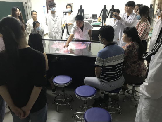 针灸推拿学院线上线下混合式实验室专题开放“3Dbody教学系统”使用示范于9月15日下午3:20在明堂园虚拟仿真实验室进行。3Dbody教学系统将现代的数字人体技术与中医特色的经络腧穴解剖相结合,用人机交互的虚拟手段辅助教学。本次活动由针灸推拿学院刘延祥副教授、李明月老师、邱继文老师和孙颖老师担任指导老师。