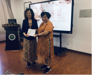 董洪英老师首先感谢了学校和学院对自己的培养,由天中学子到一名天中教师是她这一生幸福的事。其次她深入讲述了自己在工作中的一些经验,对新入职的教师今后的工作有一定的指导作用。最后,董红英老师对新入职教师赠予寄语,鼓励新入职老师要勇于承当,甘于奉献,为天中事业添砖加瓦。孟红书记向董洪英老师颁发证书。