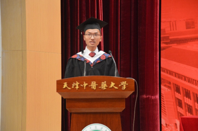 典礼上,2020届本科优秀毕业生代表2015级针灸推拿2班康意,回顾了在师长谆谆教诲下砥砺奋进、进德修业的心路历程,感触于母校的蓬勃发展,表示未来将怀天中情,承天中志,用知识和能力回馈母校的培养,做德智体美劳全面发展的社会主义建设者和接班人。