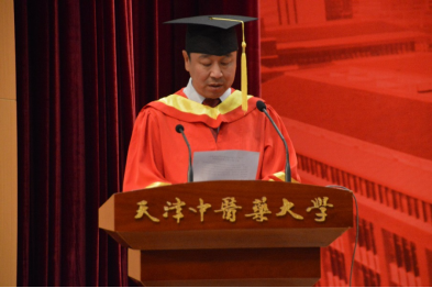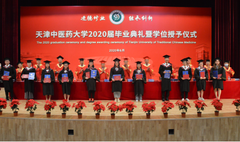 毕业典礼由学院党委书记孟红同志主持,在雄壮的中华人民共和国国歌声中毕业典礼拉开帷幕,院长徐立教授宣读《2020届毕业生学位授予决定》;副院长孟向文教授宣读《关于表彰天津中医药大学2020届优秀毕业生决定》;优秀毕业生代表为与会领导献花,表达诚挚的谢意。