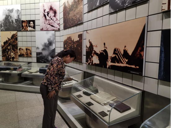 平津战役纪念馆广场上的纪念碑巍然屹立,纪念馆主题建筑雄伟挺拔、气势磅礴。在纪念馆里,大家观摩了毛泽东主席与周恩来总理关于平津战役决战方略的手稿、战士们用过的武器和生活用品、各种旗帜等。仿佛再现了党的英明决策、战士不怕牺牲的无畏精神。