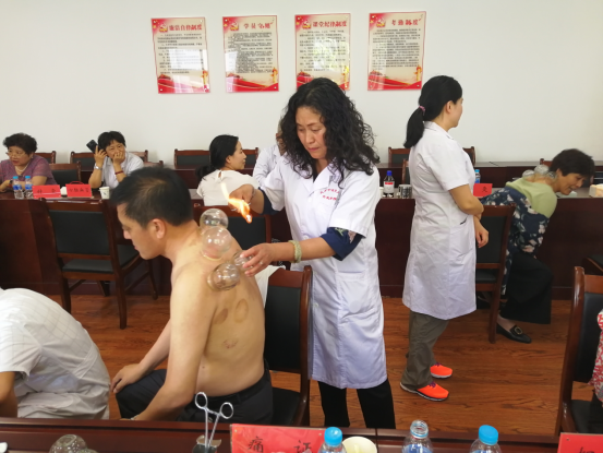 王秀云教授为杨成庄乡机关党员干部拔罐治疗