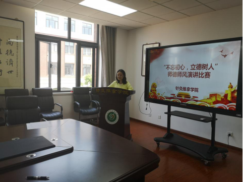 比赛过程中,陈立娟、杜凯、徐媛、王慎军、徐枝芳、董仁卫、房钰鑫、赵美丹、王鹏飞、陈波10位老师进行了精彩的演讲。老师们围绕着“不忘初心,立德树人”的主题,分别从自己的岗位特点出发,结合自己的工作经验及身边真实事迹,声情并茂的表达了自己对师德师风、教师职业道德的见解。