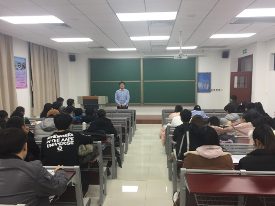 12月19日,胡涛副书记给各年级宿舍长进行校园安全宣讲