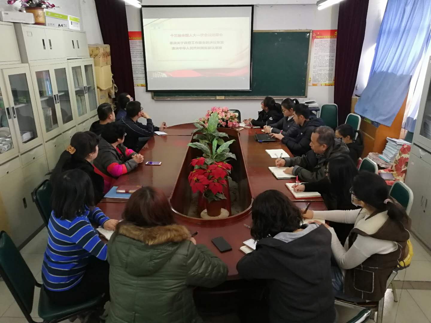 3月20日上午,针灸推拿学院组织教师、党员、学生党员共20人,在711会议室集中收看十三届全国人大一次会议闭幕式后,对习近平总书记的重要讲话进行学习研讨,大家内心激动,畅所欲言。