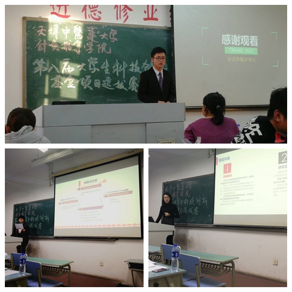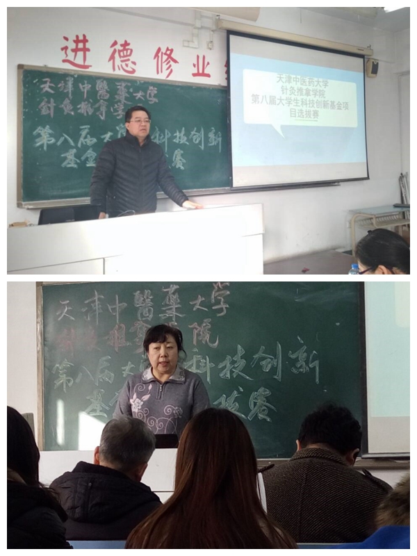 12月19日下午,天津中医药大学针灸推拿学院第八届大学生科技创新基金选拔赛在南院206和207两个教室举行。