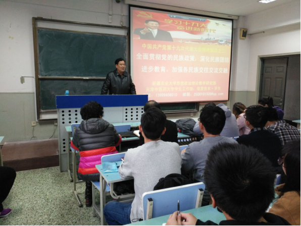 2017年11月21日下午,学院在南院教学楼301组织开展以“全面贯彻党的民族政策,深化民族团结进步教育,加强各民族交往交流交融”为主题学习贯彻党的十九大精神会议,孟向文副书记主持,学院党员老师、党员学生、入党积极分子、维吾尔族学生共200余人参加。