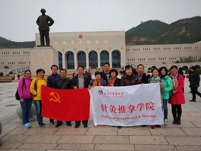 为回顾党的光辉历程,讴歌党的丰功伟绩,弘扬和发展延安革命精神,进一步激发党员干部的凝聚力和战斗力,10月21日,针灸推拿学院党委组织学院领导、党员教师一行13人到红色革命圣地延安参观学习,亲身体会延安精神,接受革命传统教育。