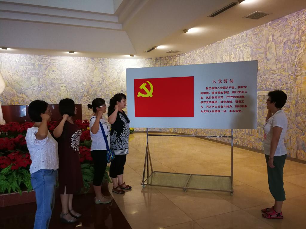 大家怀着无比崇敬的心情,认真聆听了讲解员对这位中国共产主义的先驱、伟大的马克思主义者、杰出的无产阶级革命家、中国共产党主要创始人之一李大钊先生的介绍,参观了功绩柱、浮雕、展厅和碑林。李大钊同志可歌可泣的爱国主义精神,百折不挠的坚定信念,为追求革命真理、追求民族独立和人民解放赴汤蹈火、抛头颅洒热血的英雄壮举,深深震撼了每一个人。参观结束后,大家在党旗面前庄严宣誓,重温入党誓词。