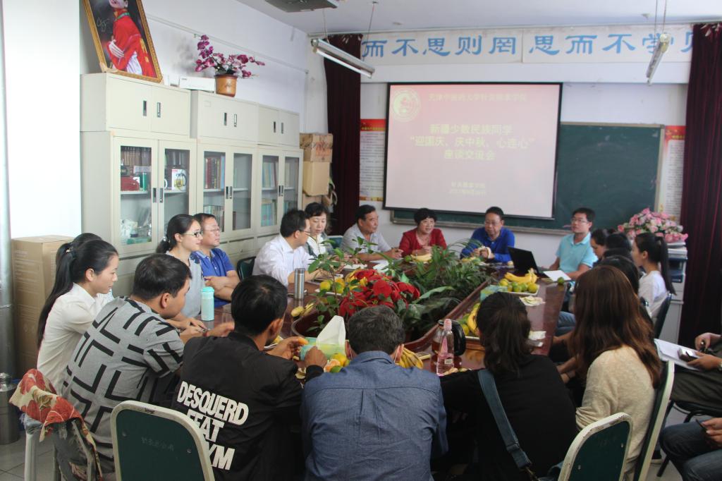 为进一步深入了解学院新疆籍少数民族学生思想和学习生活状况,有针对性地做好教育管理服务工作,9月29日下午1:00,学院在行政楼711召开新疆籍少数民族学生“迎国庆,庆中秋,心连心”座谈会,学院领导、学生处依里合木老师、学院辅导员、结对帮扶党员教师以及新疆籍少数民族学生30余人参加座谈会。