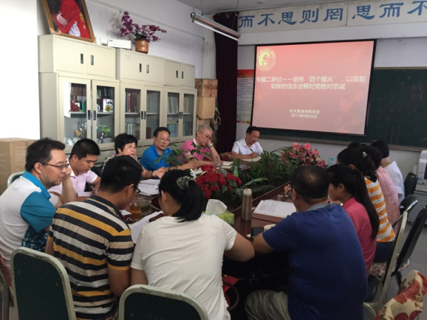 在党的十九大召开前夕,为进一步深入学习贯彻习近平总书记“7•26”重要讲话精神,按照今年党建重点工作——开展“维护核心、铸就忠诚、担当作为、抓实支部”主题教育实践活动,推动“两学一做”学习教育常态化制度化的要求,2017年9月26日下午,学院党委于行政楼711会议室组织开展了专题二——“坚持‘四个服从’,以坚毅如铁的信念诠释对党绝对忠诚”深入学习贯彻习近平总书记“7•26”重要讲话精神研讨会。