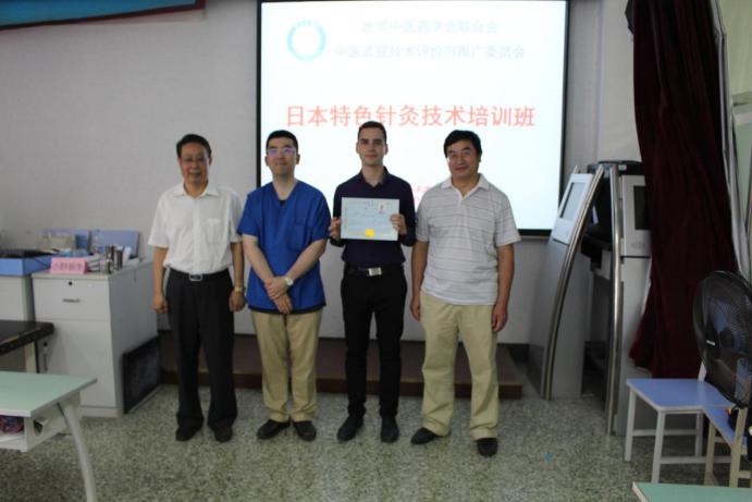 培训结束后,举行了简短的结业仪式,世界中医药学会联合会中医适宜技术评价与推广委员会会长郭义教授为此次培训学习做总结发言。他祝贺每一位学员顺利结业并感谢小野泰生老师两天来的辛苦教学。他指出在中国办培训班学习日本特色针灸技术是首次,目的是想让学员们在掌握中国特色的中医适宜技术的同时,也能汲取其他国家行之有效的技术,拓宽自身的技能,造福国民。同时也希望小野泰生老师,以及来自其他国家的参会学员们能将中国特色的中医适宜技术深入传播到贵国家。为让中医走向世界,针灸走向世界而贡献力量。同时也希望大家关注并积极加入世界中医药学会联合会中医适宜技术评价与推广委员会,为中医事业、为国民的健康事业贡献自身的力量。