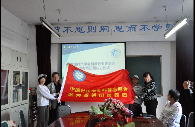 10月15日15:00,“中国针灸学会科普专业委员会志愿者第四团”成立仪式在天津中医药大学南院行政楼711隆重举行。出席本次活动的领导有中国针灸学会刺络与拔罐专业委员会主任委员、科普专业委员会副主任委员、针灸学院院长郭义教授,中国针灸学会刺络与拔罐专业委员会副秘书长、科普专业委员会第四团团长、党总支副书记孟向文教授和针灸学院团总支全体老师,针砭之志研究会和青年志愿者协会的成员也参加了本次活动。