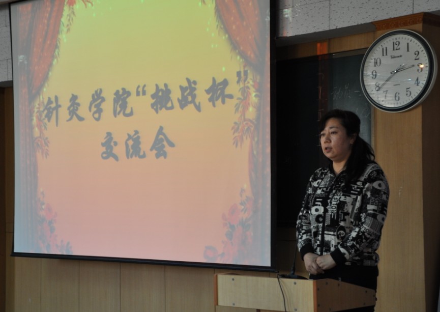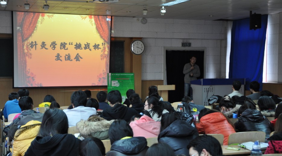 11月20日下午2:30,由针灸学院团总支学生会学习部主办的“挑战杯”大型经验交流会在北院教学楼第五多媒体教室举行。学院党总支副书记孟向文教授和学办全体老师以及2012级、2011级全体学生和2010级涉外针灸专业班学生参加了此次交流会。