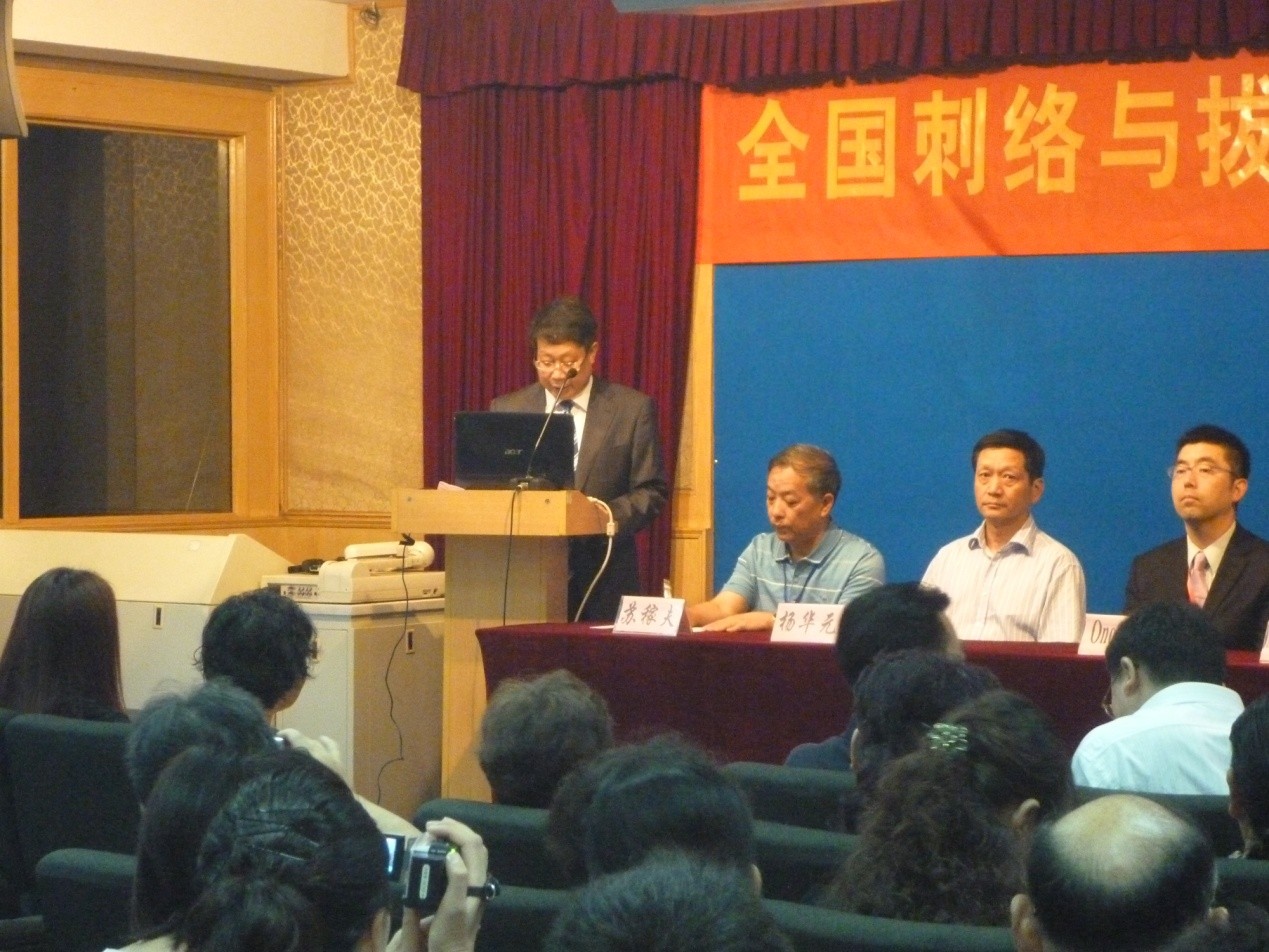 2012年8月18日全国刺络与拔罐暨针灸器材学术交流会在国际学院二楼学术报告厅隆重召开。上午会议开幕式由刺络与拔罐委员会副主任委员李军教授主持,校党委书记张金钟教授、刺络与拔罐委员会主任委员郭义教授、针灸器材委员会主任委员杨华元教授,韩国心天医学创始人朴楠羲先生,日本刺络学会小野泰生先生,格拉茨医科大学Gerhard Litscher 教授,海德堡中医学院Henry Johannes Greten 教授,江苏省针灸学会器材专业委员会主任委员曹炀,湖南中医药大学针灸推拿系副主任周国平教授,泉州中医院针灸科苏稼夫主任出席了开幕式。