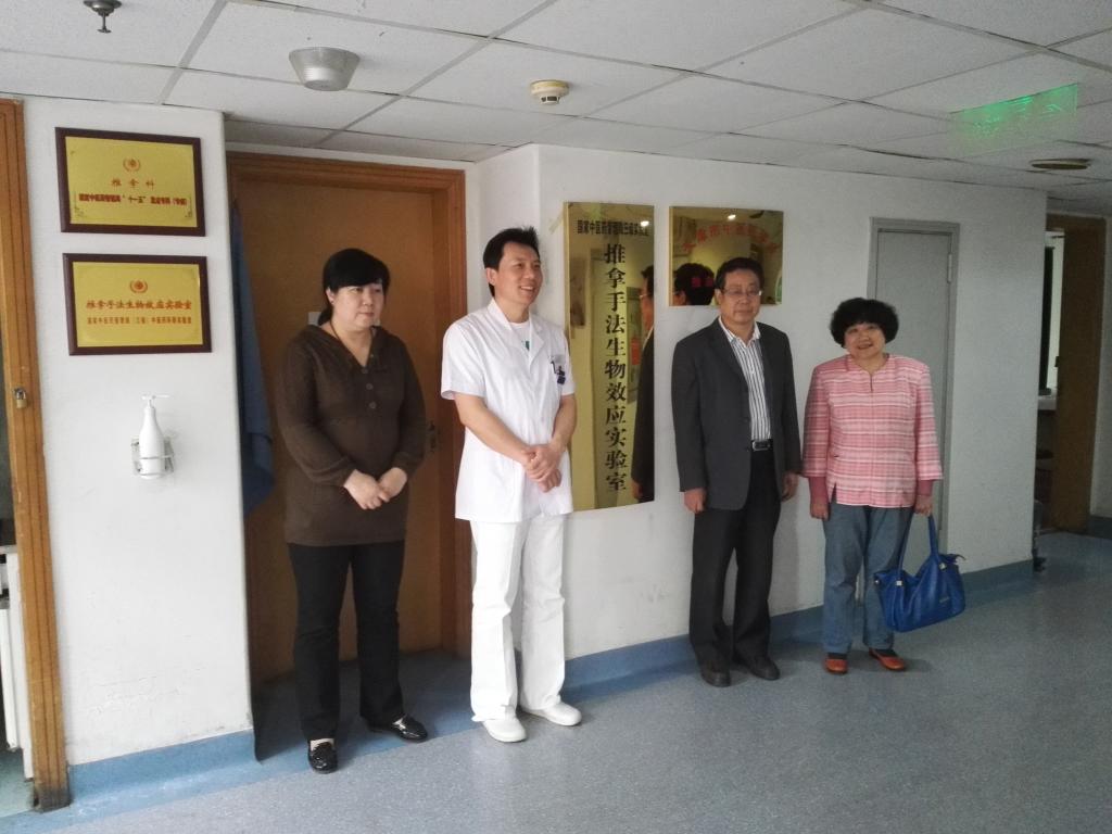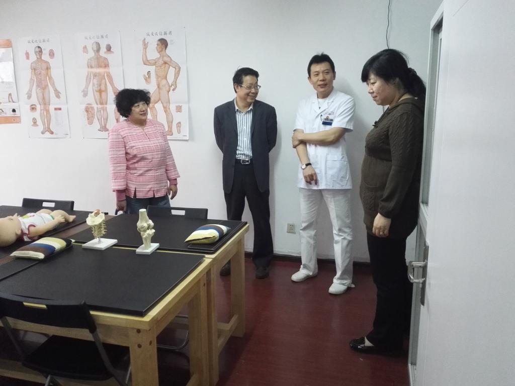 4月21日下午,我院院长郭义,党总支书记孟红,副书记孟向文来到一附院推拿科,就新建成的针推学院临床示教室、国家中管局三级生物效应实验室进行参观并了解整体情况。推拿科主任、我院副院长王金贵为大家介绍了示教室的情况。