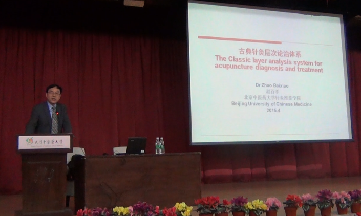 赵百孝教授从事针灸教学、临床和标准化工作20余年,代表的学术观点认为,层次辩证是针灸辩证的重要方面之一。在讲座中他讲到,层次是自然界的基本特征,宇宙中的一切都具有层次;中医学认为人体是按一定层次结构组成的有机体,人体层次有皮、脉、肉、筋、骨——五脏是内,六腑是外;在临床治疗中不仅穴位要选对,还要选择好入针的深度,不同的人不一样,这就是人体层次的不同。他认为经络学说与层次论治是针灸治疗中不可缺少的两个方面,只有两者有机结合,针灸才能真正做到有的放矢,提高疗效。