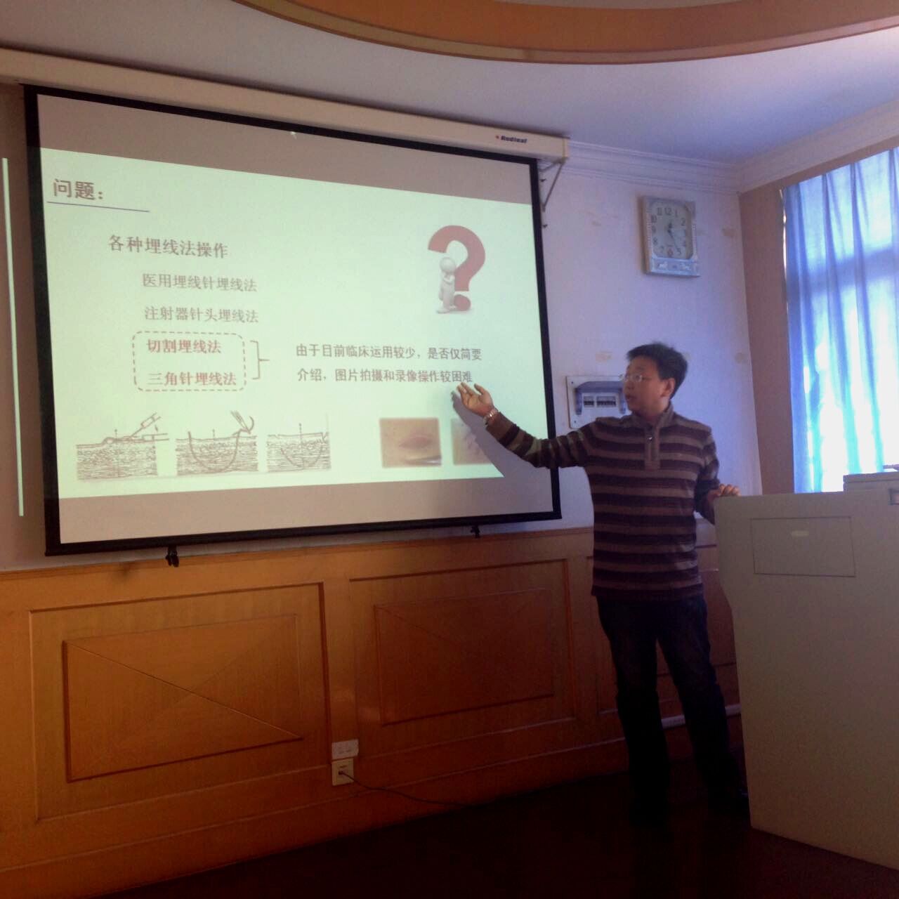 湖南李强老师正在讲解穴位埋线疗法的编写思路