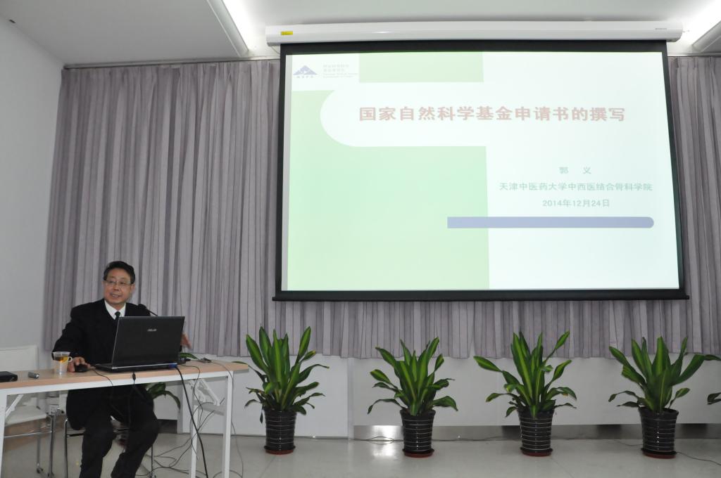 会议由天津医院科研科科长杨阳老师主持,首先由郭永明教授做了题目为《国家自然基金标书的撰写》的报告。郭永明教授从申请人要求、标书题目、摘要、立项依据、研究内容、研究方案等标书的具体内容和写作要求作了详细的介绍,并鼓励符合条件的青年科研工作者积极申请,激发了大家的科研热情。随后郭义教授从2014年我国各医药院校国家自然基金中标情况、我院国家自然基金主持现状及标书撰写三方面做了精彩的报告,郭义教授以自己已中标的多项自然基金标书为例,为大家详细、直观地介绍了自然基金标书的写作技巧,并强调大家需要以科学严谨的态度认真对待自然基金标书的撰写,撰写本身即是一个艺术设计的过程,引发了大家的强烈共鸣。讲座结束后,在场医生积极提问,郭义教授认真地一一做了回答。最后天津医院骨科教研室主任叶伟胜老师对此次会议内容作了简短的总结,并对郭义教授和郭永明教授的精彩报告表示感谢。