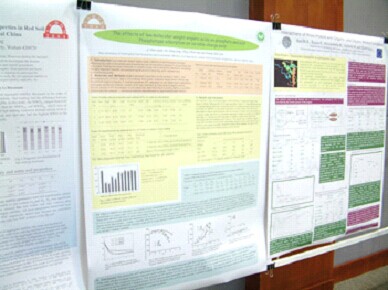 作为学术会议重要组成部分的墙报,能够为学术会议中的非报告人员提供一个展示的平台。较之论文而言,墙报必须具有“美观、醒目、简明扼要、布局合理”等特点。制作墙报者应该尽量利用图表等直观的表达方式,同时要避免一些常见误区,如文字堆积、字体过小、版面拥挤等。可准备一些发表文章的抽印本或相关资料,以备读者需求。墙报形式举例: