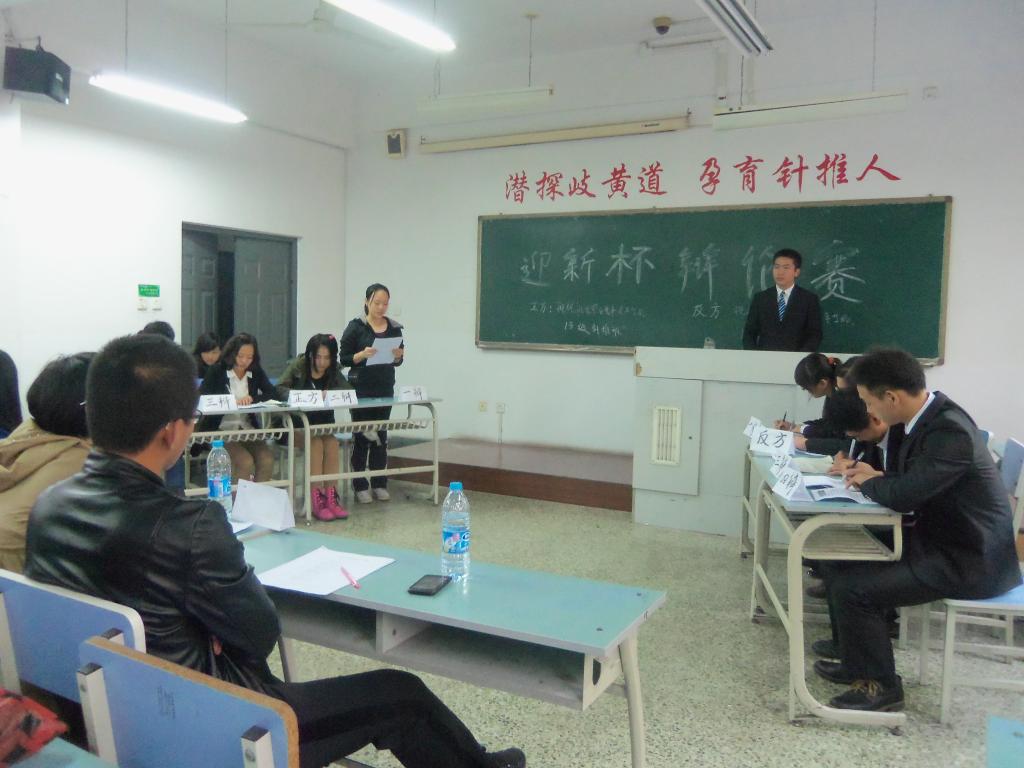 10月22日下午15时,针灸学院学生会辩论协会主办的“迎新杯”辩论赛决赛于南院教学楼103教室进行,担任此次比赛的评委有针灸学院学办刘志伟老师、赵美丹老师与学生会主席团赵悦主席等。