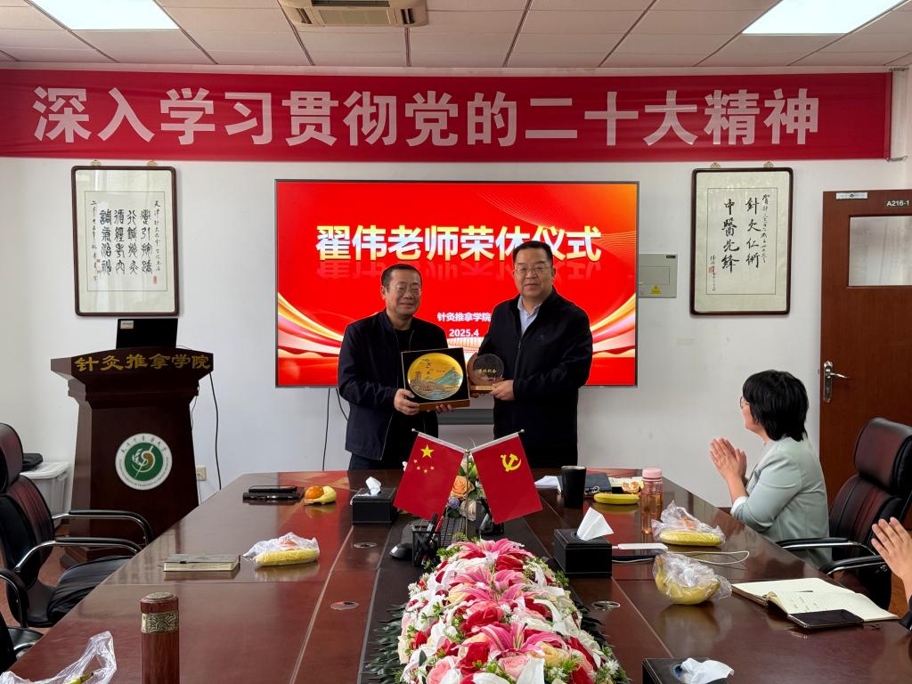 4月15日下午,针灸推拿学院教师荣休仪式在明堂园甲216会议室举行,学院党政领导、全体教职工、学生代表共同见证翟伟教授的荣休仪式,学院党委副书记薛亮主持仪式。